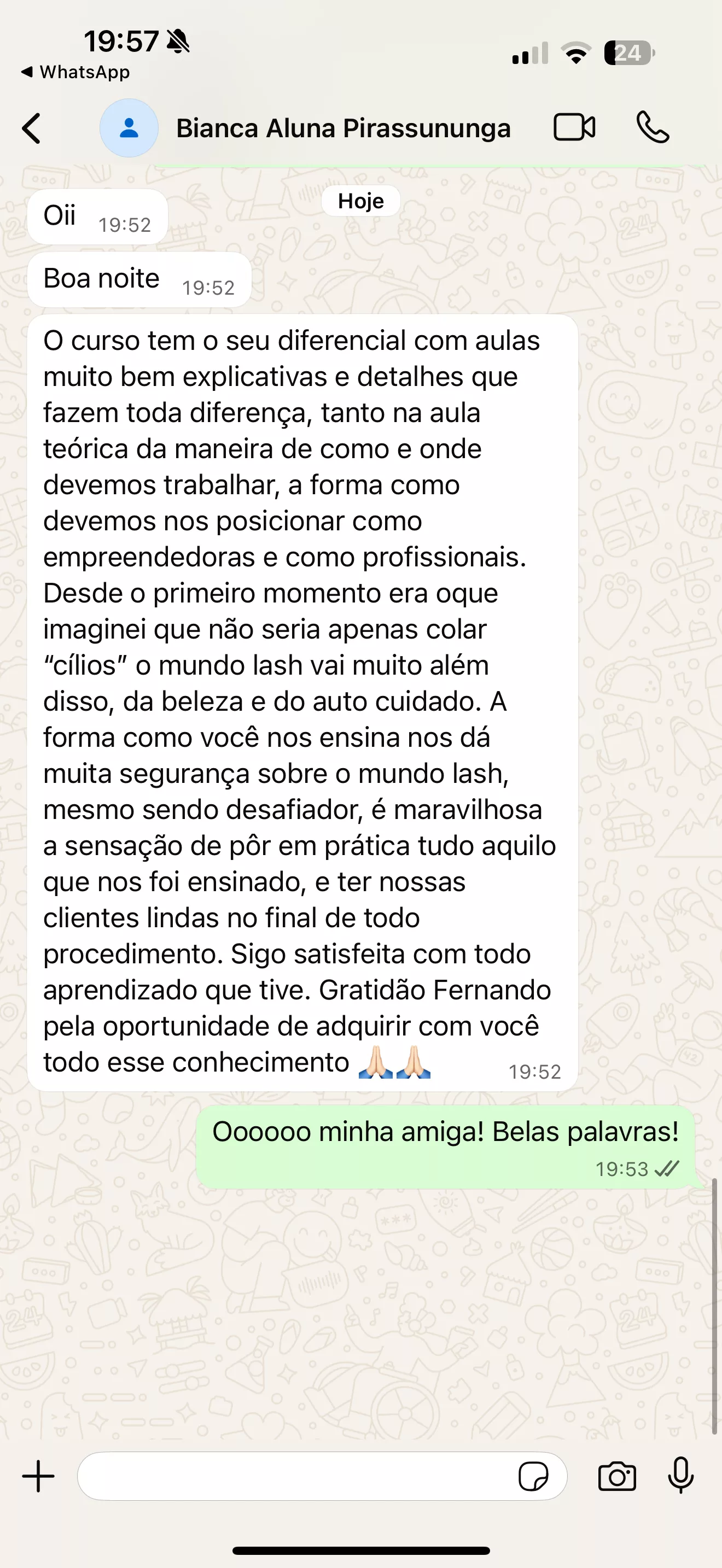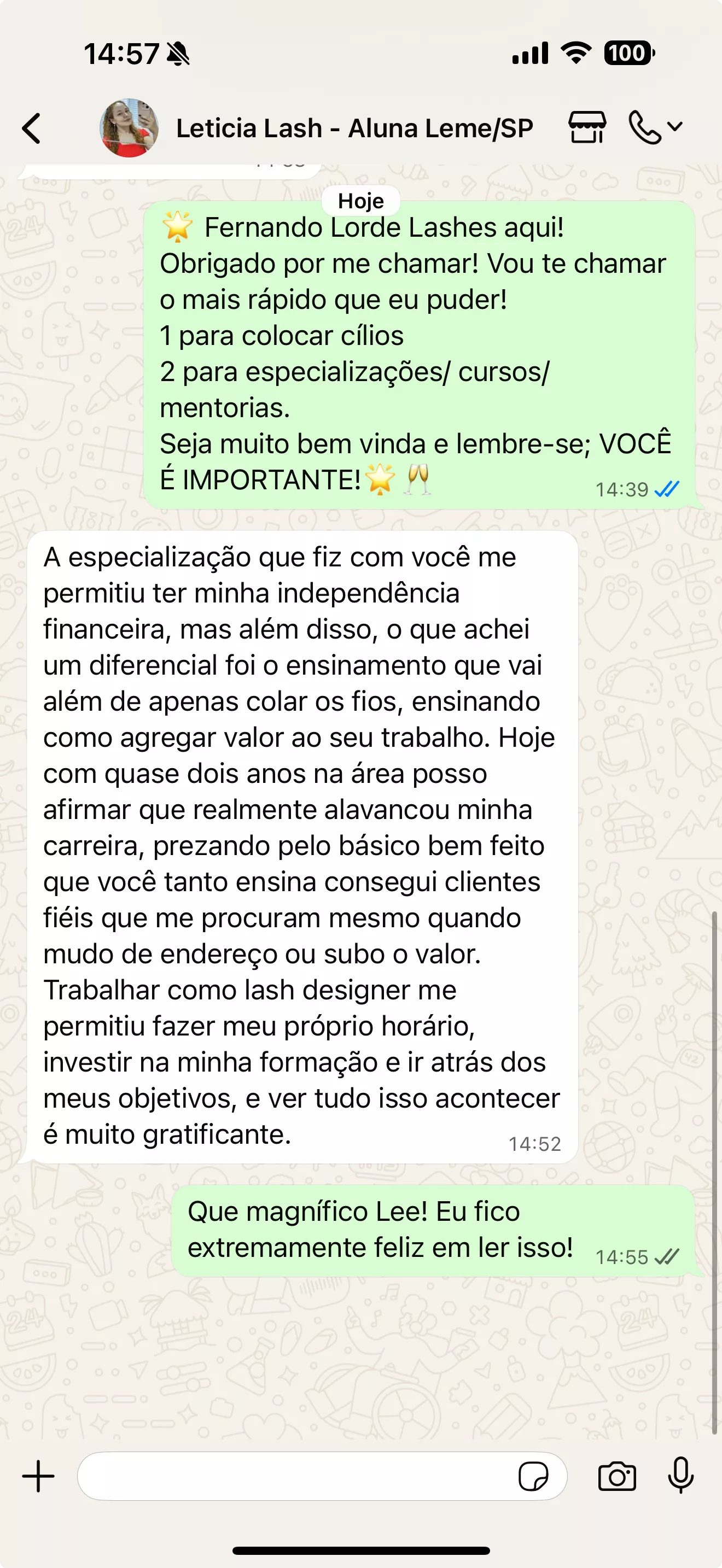 Palestei no Lash Experience, Beauty Fair e em diversos países — incluindo a Guatemala em 2024. Já atendi mais de 5.000 clientes e formei mais de 200 alunas do zero, além de impactar mais de 1.000 mulheres em mentorias e palestras ao redor do mundo.